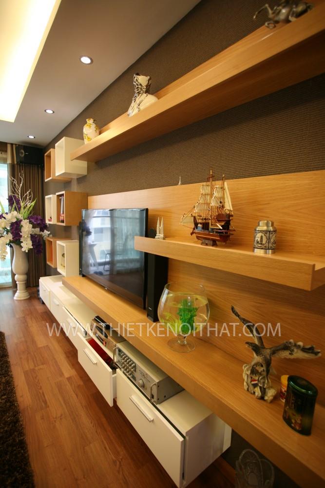 Thi công giấy dán tường phòng khách chung cư Green Star Phạm Văn Đồng