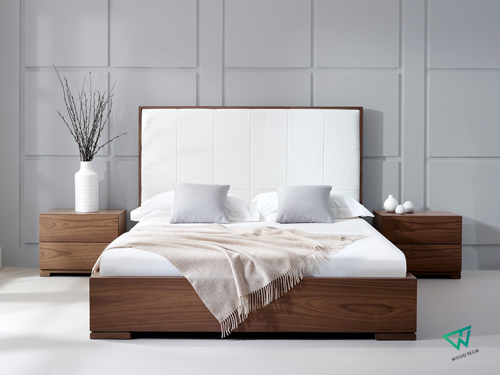 Thi công đồ gỗ - giường gỗ óc chó veneer WT - 0005