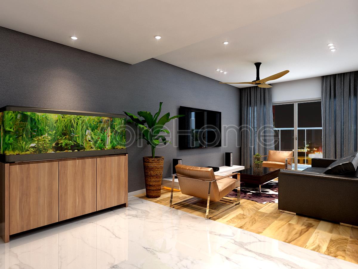 Thiết kế nội thất phòng khách khá đơn giản với các tone màu sáng và tối sử dụng linh hoạt mang đến cảm giác cân bằng, tránh sự gò bó và đơn điệu. Không gian phòng khách tận dụng tối đa ánh sự tự nhiên từ bên ngoài mang mang lại sức sống cho căn phòng và tăng độ thoáng, mở rộng view cho khu sinh hoạt chung. Thiết kế không đi nặng vào chi tiết mà tập trung hơn vào hai yếu tố là không gian và ánh sáng. Hệ thống tủ gỗ và kệ được tối giản thể hiện rõ nét cá tính của gia chủ bên cạnh đó lại tiết kiệm được một không gian không nhỏ cho việc vui chơi và sinh hoạt.