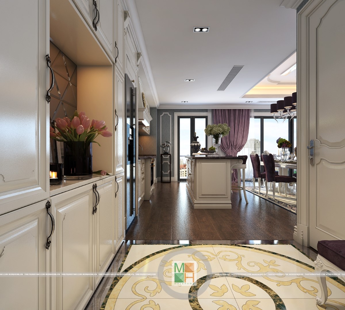 Thiết kế nội thất chung cư mang phong cách tân cổ điển là một trong những thiết kế khá phức tạp và đòi hỏi sự tỉ mỉ của cả chủ nhà lẫn kiến trúc sư. Với đặc điểm sử dụng nhiều đường cong cầu kỳ, chi tiết trang trí khá phức tạp vì vậy nên các thiết kế tân cổ điển thường ít khi được lựa chọn cho các căn nhà chung cư còn hạn chế về mặt diện tích. Mặc dù vậy chính cái Tôi cá tính cũng như mong muốn của gia chủ đã quyết định biến khó khăn đó biến thành điểm đặc biệt, tạo ấn tượng cho căn chung cư Imperia Garden phong cách tân cổ điển sang trọng.