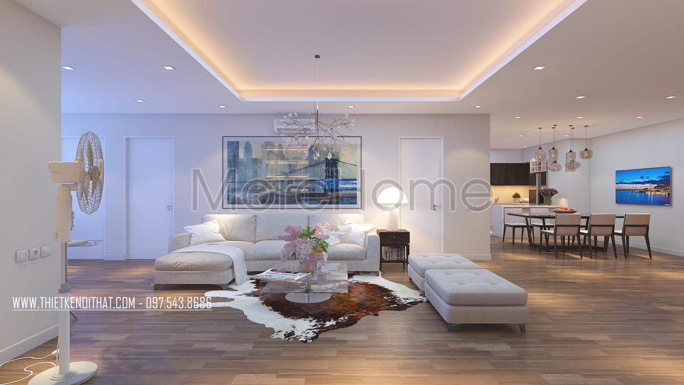 Thiết kế nội thất chung cư hiện đại là một trong những xu hướng thiết kế đang được ưa chuộng ngày nay. Đặc điểm của các thiết kế nội thất hiện đại là sử dụng tone màu sáng làm nổi bật các đường nét và vật dụng, tạo điểm nhấn về mặt thẩm mỹ và góp phần mang lại cảm giác cơi nới cho không gian hẹp. Bên cạnh đó, với thiết kế chung cư hiện đại, kiến trúc sư thường ưu tiên sử dụng các đường nét thiết kế rõ ràng, không rườm rà hay nặng về chi tiết vì vậy mang đến sự rõ ràng và tiện nghi cho gia chủ.