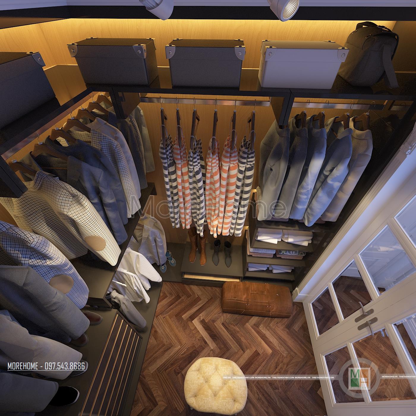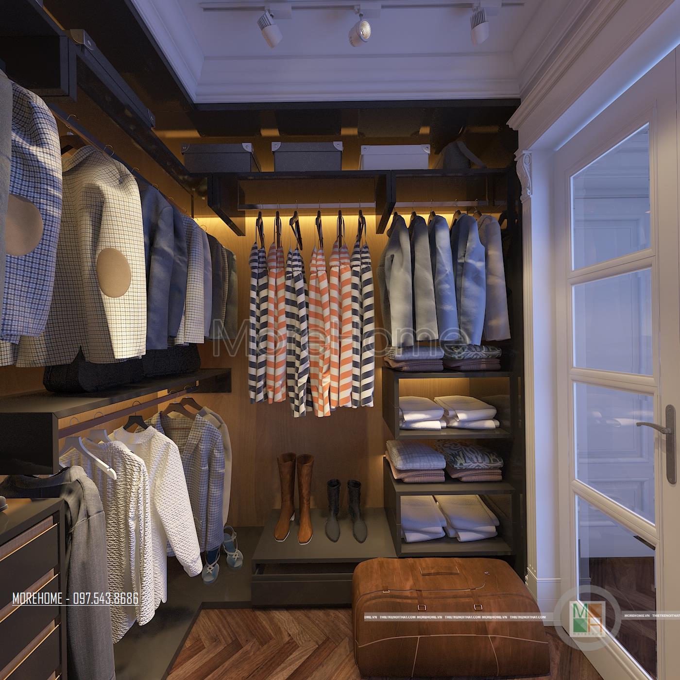 Một thiết kế nhỏ dành cho không gian thiết kế quần áo mang sự thoải mái và ấn tượng cho gia chủ. Mặc dù không gian không quá rộng nhưng với các thiết kế thanh ngang gọn gàng dạng mở, căn phòng trở nên thoáng rộng hơn nhiều.