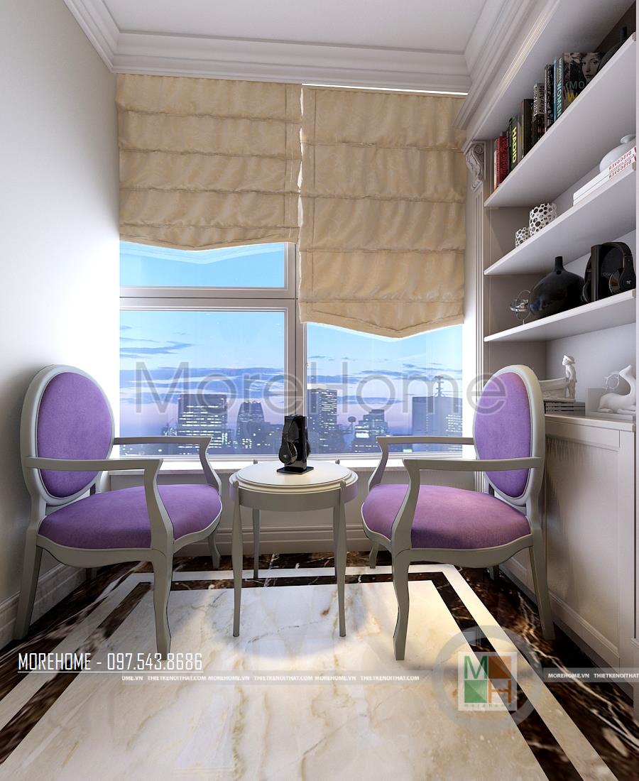 Với thiết kế nội thất tân cổ điển, kiến trúc sư tập trung nhiều hơn vào các thiết kế đường cong tinh tế, các hoa văn trang trí cũng khá cầu kỳ từ đó không gian sống trở nên mềm mại và uyển chuyển hơn. Tuy nhiên chúng ta cũng phải kể đến mặt hạn chế của các thiết kế này, các thiết kế tân cổ điển thường khá rườm rà, đặc biệt khi ứng dụng trong một không gian thiết kế nhỏ, hẹp. Chính vì vậy, để khắc phục tối đa điểm hạn chế này, kiến trúc sư đã khéo sử dụng các tone màu sáng từ đó giúp tạo độ thoáng và mở hơn cho căn hộ.