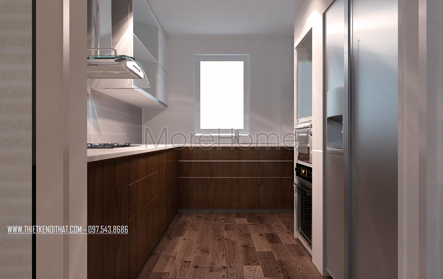 Tiếp đến là thiết kế nội thất phòng bếp hiện đại được đặt có chú ý ngay cạnh phòng ăn mang đến sự tiện nghi và thoải mái cho gia chủ. Tác giả sử dụng tone màu trắng sáng làm chủ đạo tạo không gian thiết kế hiện đại, sạch sẽ và thu hút hơn bao giờ hết.