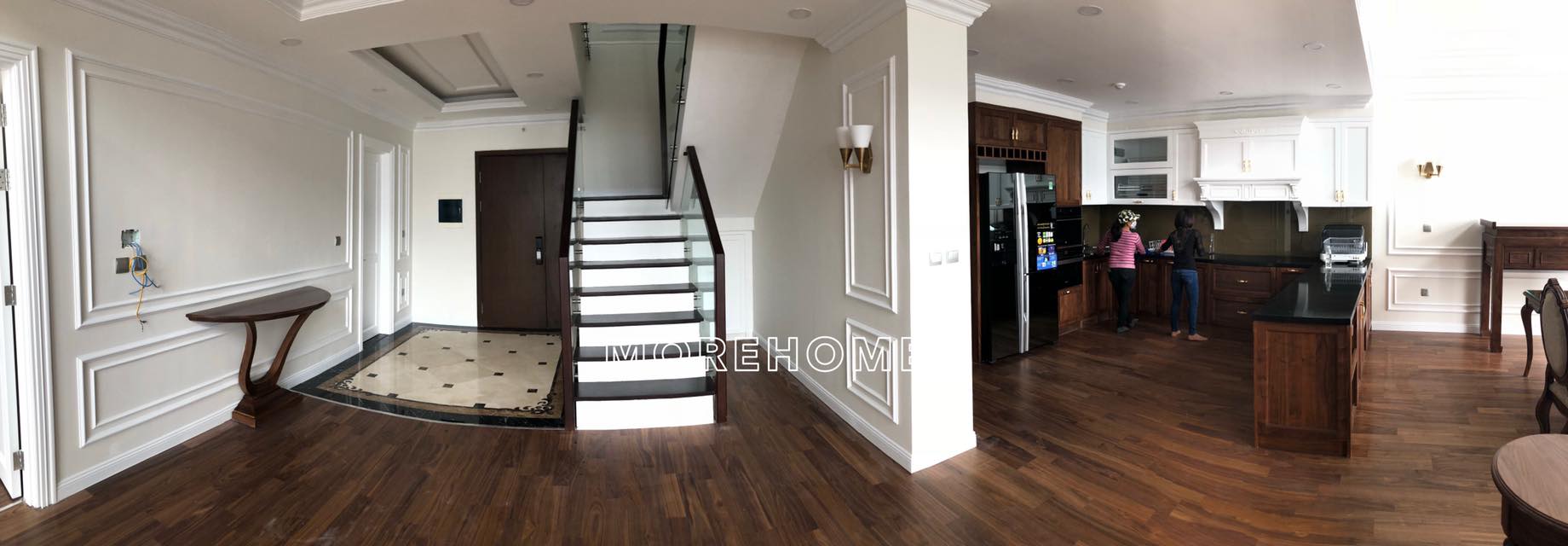Thi công nội thất chung cư Tràng An phong cách tân cổ điển - một công trình thi công thực tế được thực hiện bởi Morehome. Dựa theo bản vẽ 3D của KTS Morehome mà đội thợ thi công của chúng tôi bám sát và hoàn thiện công trình, cùng với đó, toàn bộ sản phẩm nội thất được sản xuất tại xưởng Morehome.