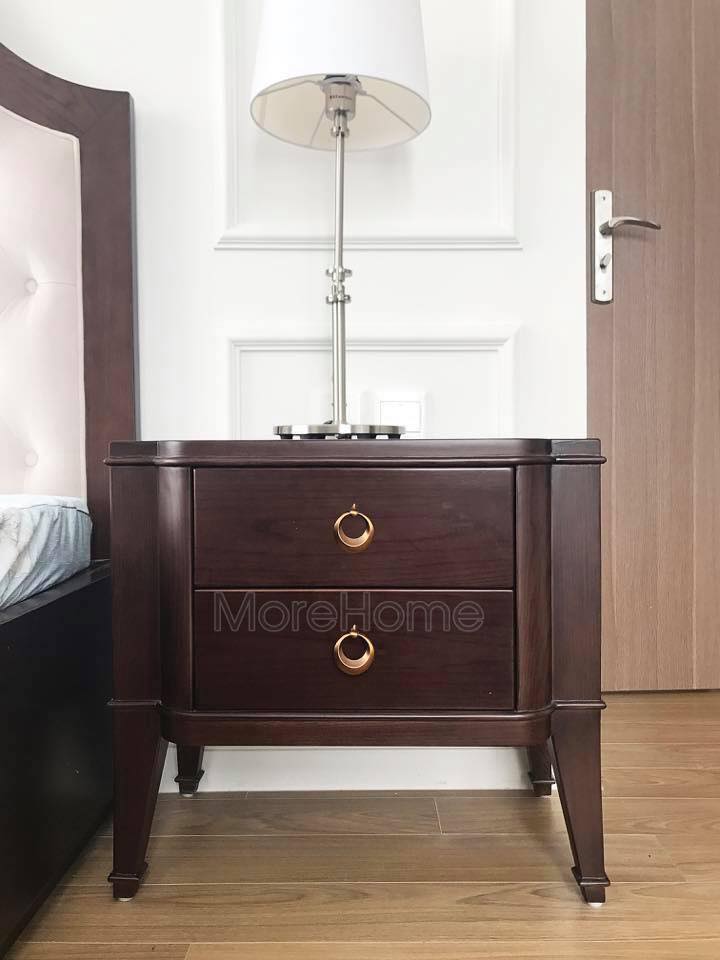 Thi công chung cư hiện đại với phòng ngủ được thiết kế tối giản với mẫu giường ngủ, kệ tủ trang trí, tab đầu giường. Mẫu giường ngủ cho căn hộ chung cư này được Morehome sản xuất với chất liệu gỗ công nghiệp, đầu giường được thiết kế với tab giường bằng nỉ cao cấp, giúp cho căn phòng không những hiện đại mà còn cao cấp, mang đến giấc ngủ thoải mái cho gia chủ.