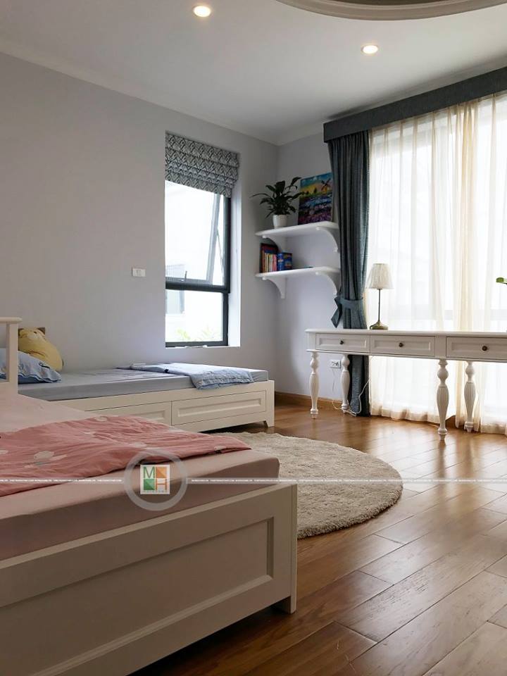 Cuối cùng là thi công nội thất phòng ngủ Master mang vẻ đẹp sang trọng và sự tinh tế. Ánh sáng tự nhiên là điểm nhấn mang đến cho gia chủ cảm giác dễ chịu và sự hứng khởi mỗi ngày thức dậy. Việc thiết kế vận dụng nhiều vật liệu nhẹ như gỗ, kính cường lực cũng góp phần tạo nên sự linh hoạt cho không gian sống. Bên cạnh đó, thiết kế tủ, kệ đơn giản, gọn gàng theo sở thích của gia chủ vừa đảm bảo tính công năng lại tiết kiệm không gian đa năng trong phòng.