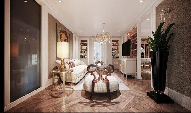 Bố trí nội thất phòng ngủ master tân cổ điển cao cấp có phòng giải trí ấn tượng tại biệt thự Hải Phòng.
