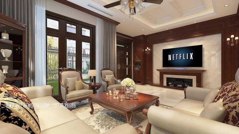 Morehome đã hoàn thiện sản xuất kệ tivi tân cổ điển gỗ óc chó để được sử dụng tại phòng khách biệt thự thanh hóa.